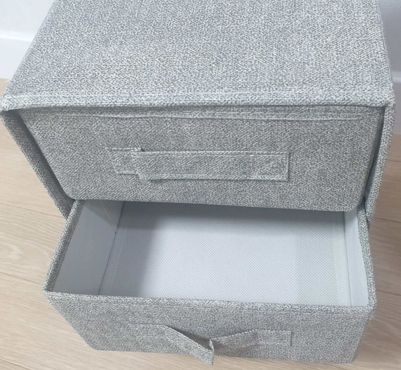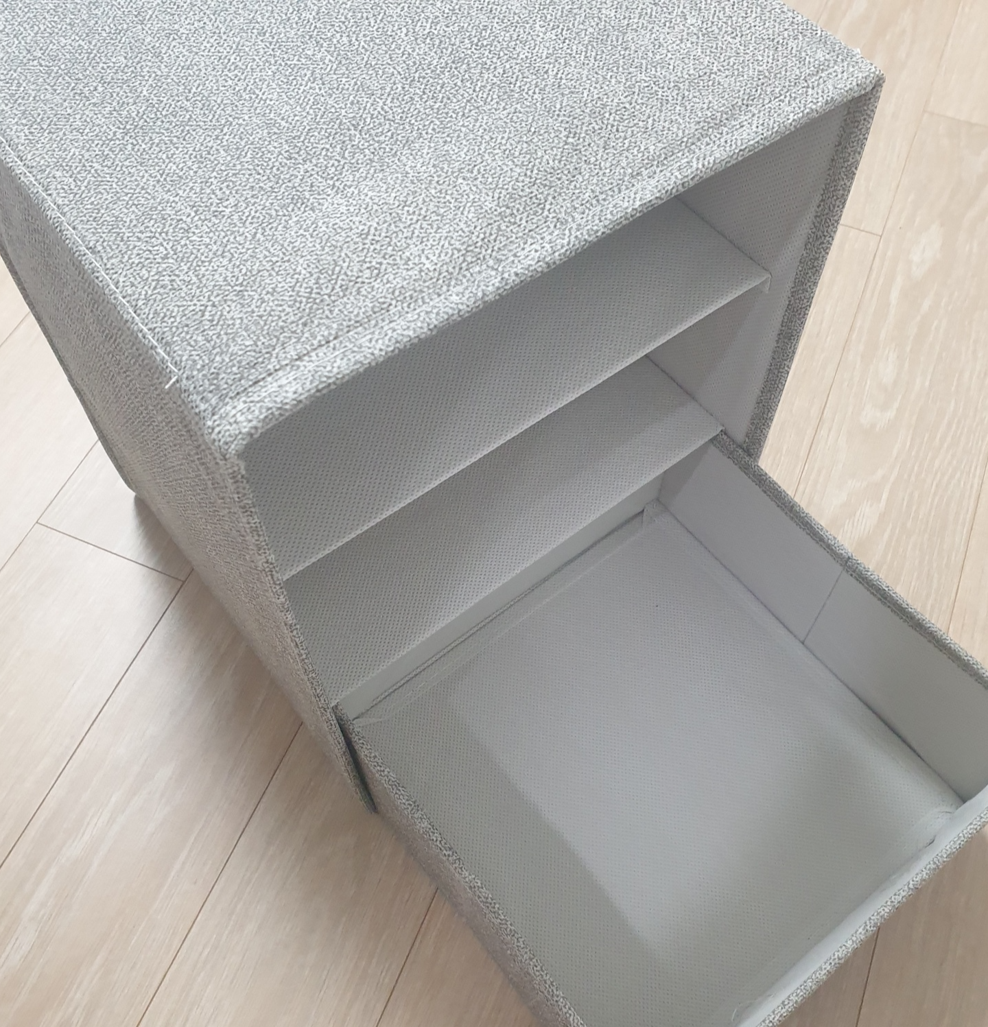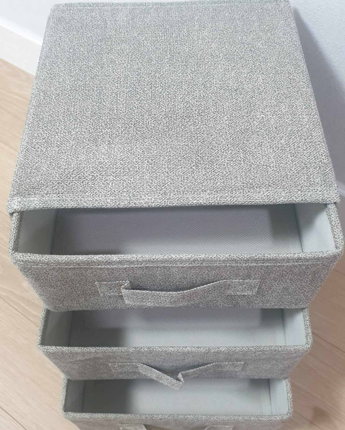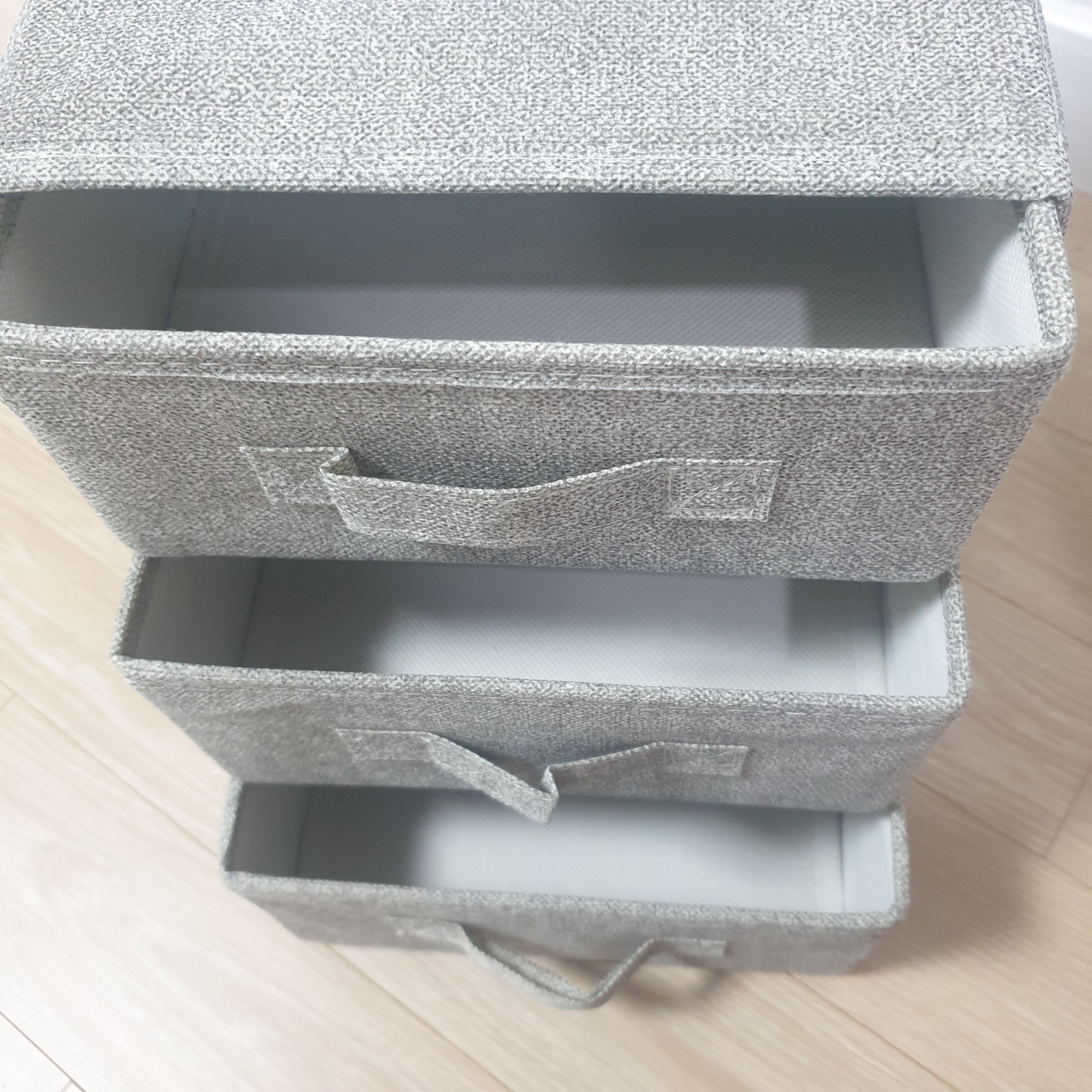 깔판넣은 서랍 3개를 서랍장본체에 끼워주기만 하면 세상간편한 부직포서랍완성이에요~👏👏
