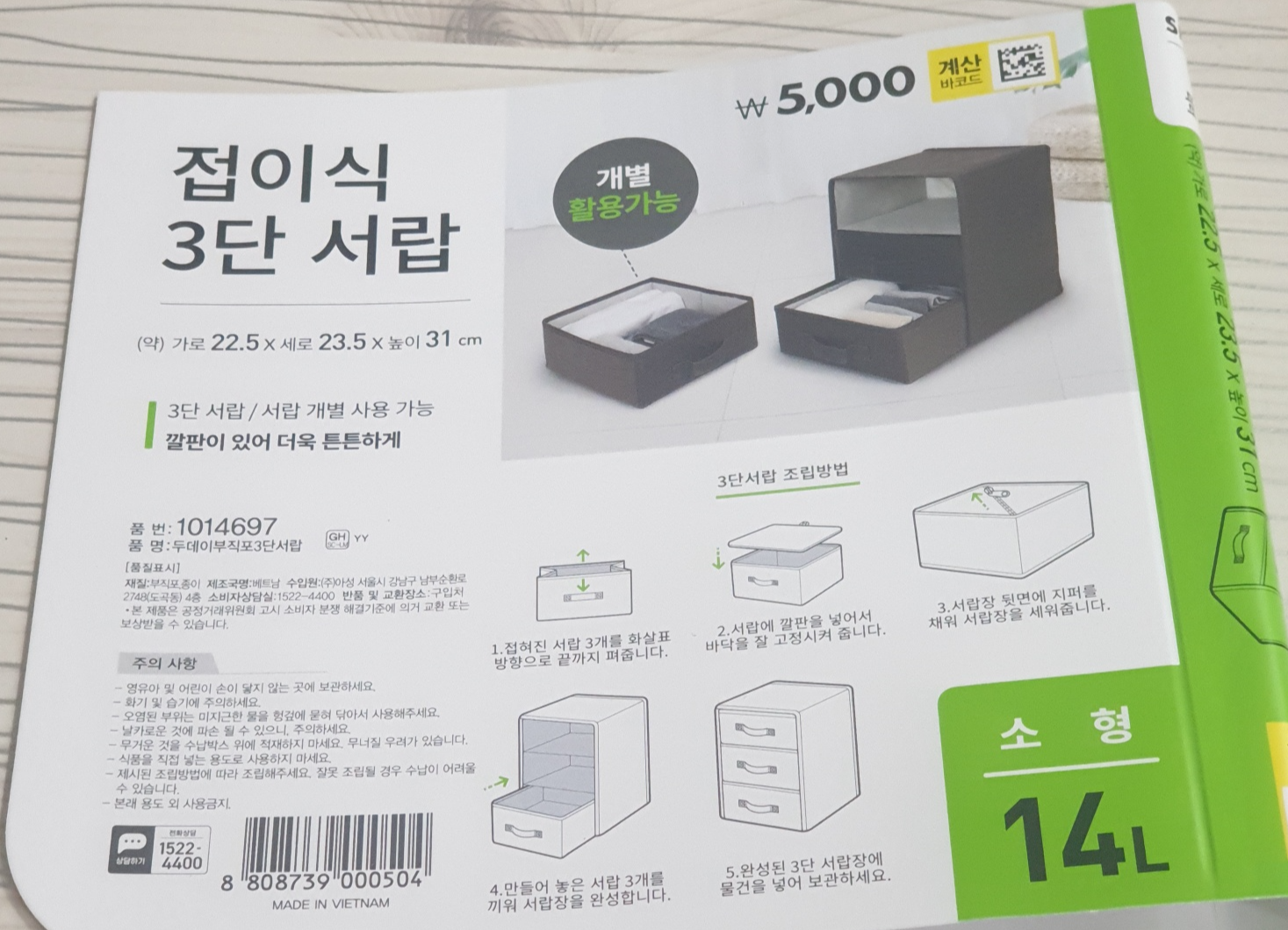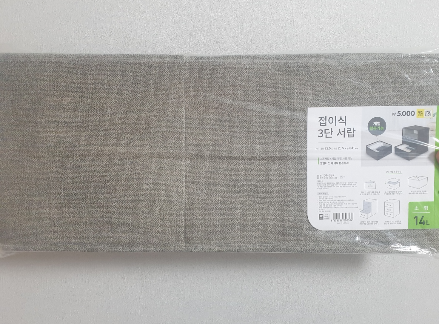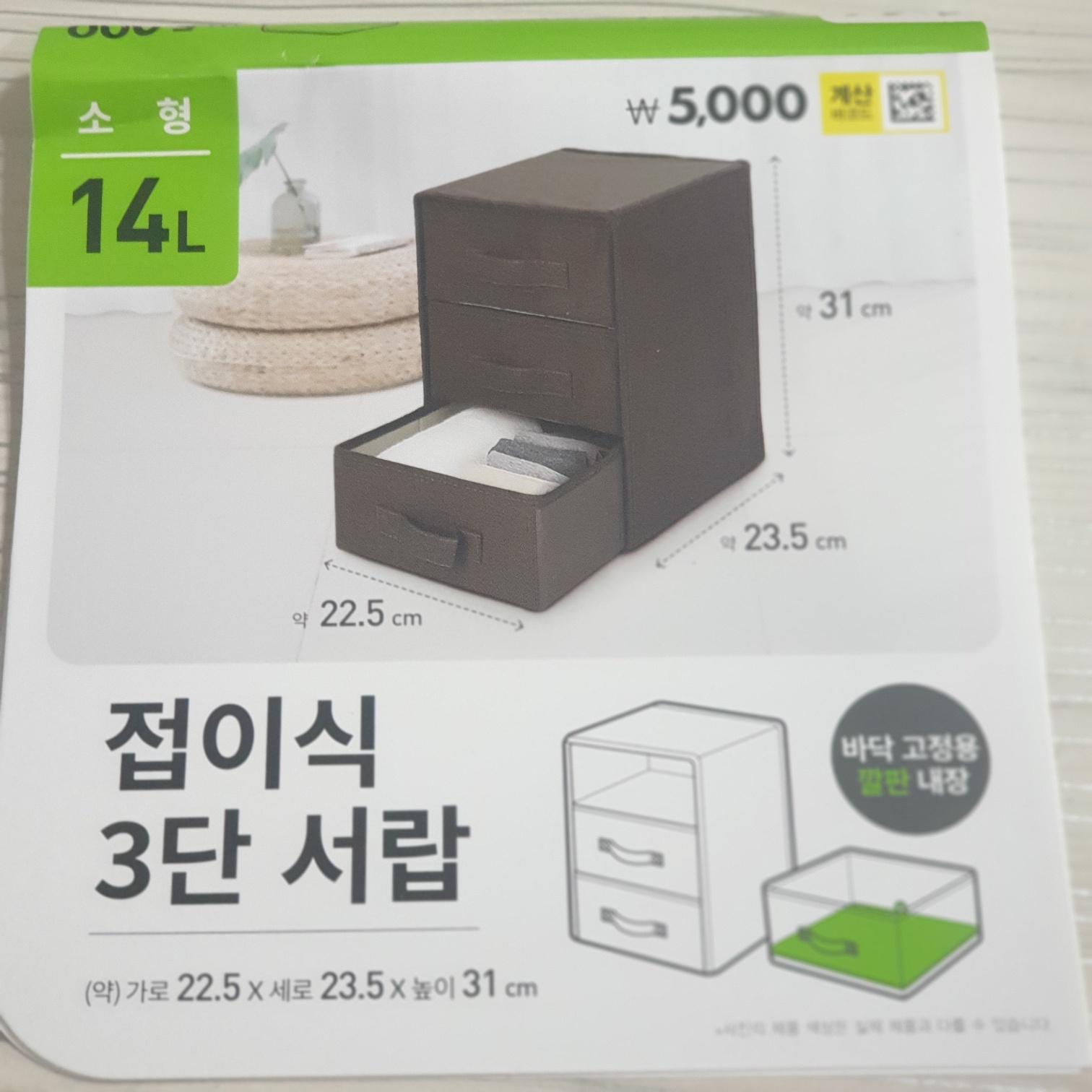 14L소형 서랍이고 접이식으로 간편하게 조립가능해요!👏갈색,검정,그레이 색상이있었는데 그레이로 픽했어요!